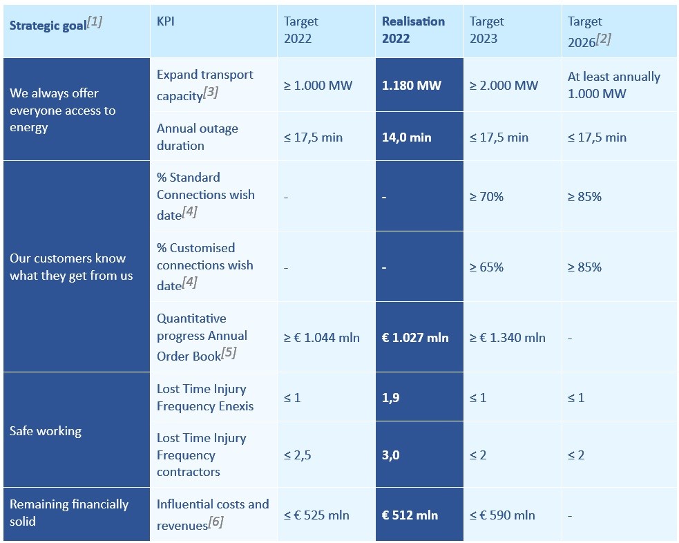 De uitwerking van de strategie kan op verschillende manieren. Van belang is in ieder geval dat een ESG-strategie intern concreet wordt gemaakt met KPI’s. Hierbij moet duidelijk gemaakt worden wat is de stip op de horizon is en dienen doelstellingen specifiek, meetbaar, acceptabel, realistisch en tijdgebonden (SMART) te worden geformuleerd. Door een tijdgebonden indicatie te geven is het ook mogelijk om de doelen in een roadmap te plotten. Denk hierbij aan het benoemen van jaardoelen, de belangrijkste activiteiten, het inzetten van mensen en middelen, het ontwerpen van de ondernemingsonderdelen, portfoliomanagement en risicomanagement. Voor een deel kan hierover ook gerapporteerd worden, zoals bijvoorbeeld Enexis doet in figuur 3.