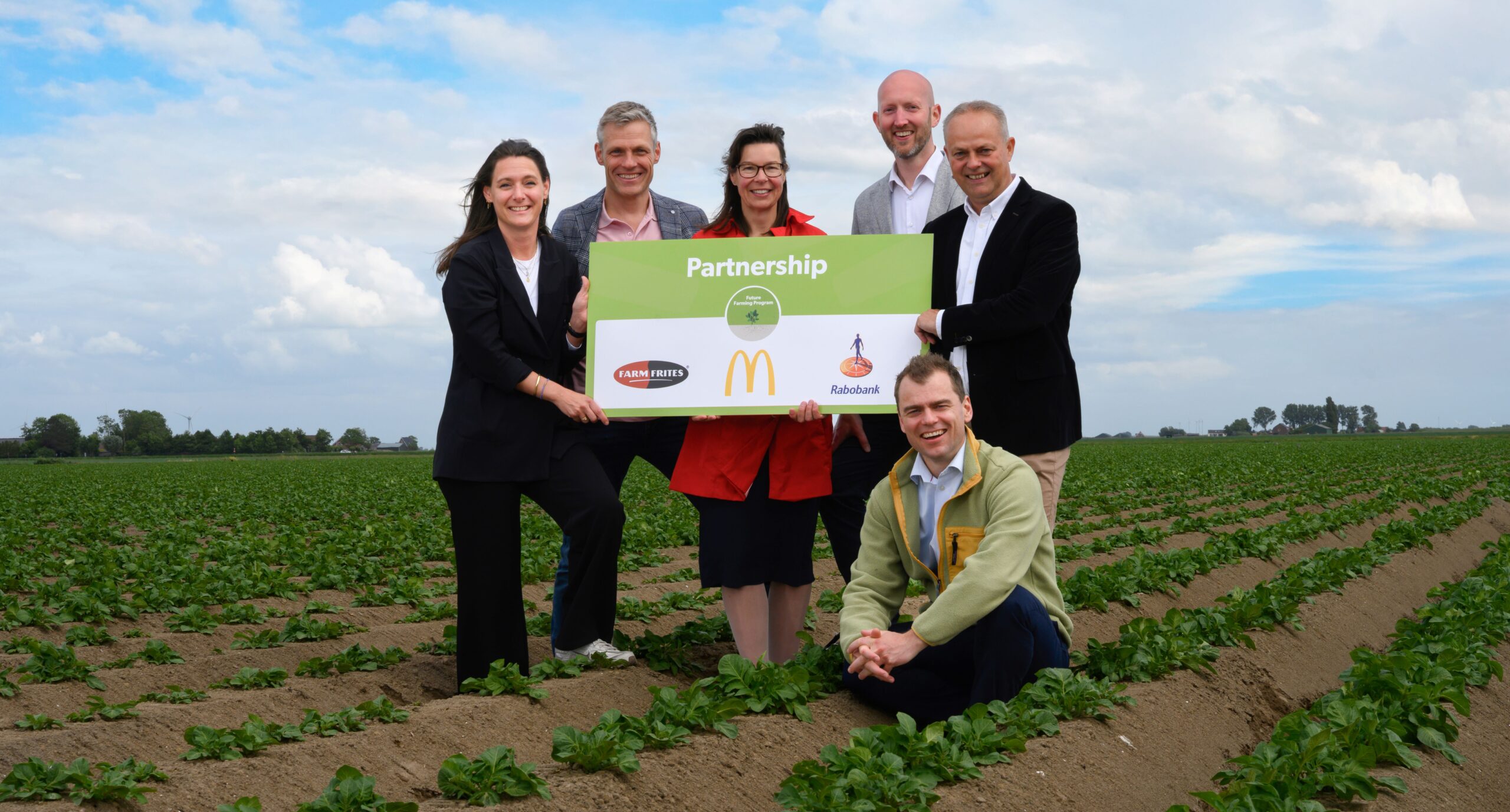 Foto: Van links naar rechts: Nicoline van Gerrevink (Rabobank), Hens Gunneman (Farm Frites), Gea Bakker (Rabobank), Laurens Knol (McDonald’s), Leon Boer (Farm Frites) en Jerôme de la Chambre (McDonald’s)
