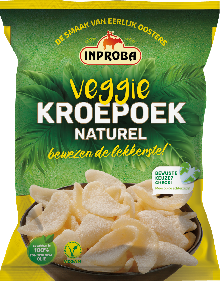 Naast de ambitie naar duurzaam wil Inproba geen concessies doen op smaak. Inproba ontwikkelde de allereerste 100% plantaardige kroepoek naturel zónder garnalen die net zo lekker smaakt als kroepoek naturel met garnalen. Heerlijk krokant, vol en aromatisch met de authentieke smaak van kroepoek die je gewend bent.