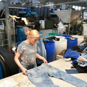 Op de Circular Textile Days toonden de partners de eindresultaten: niet alleen de garens maar ook de polo’s en jeans die je ermee kunt maken. “Je ziet direct hoe goed de kwaliteit is van deze gerecyclede stoffen.”