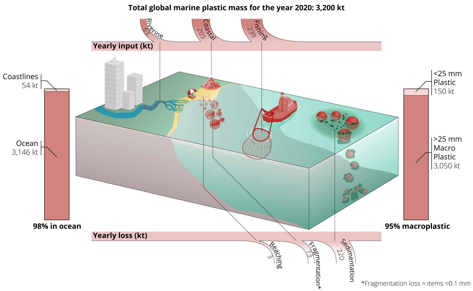 Bovendien belandt er per jaar veel minder nieuw plastic in de oceaan dan voorheen werd aangenomen: een half miljoen ton in plaats van vier tot twaalf miljoen. Het zijn enorme verschillen. Volgens hoofdauteur Mikael Kaandorp laat dit goed zien dat het onderzoek naar plastic in de oceaan in de kinderschoenen staat. “We zijn echt nog op zoek naar ordegroottes.”
