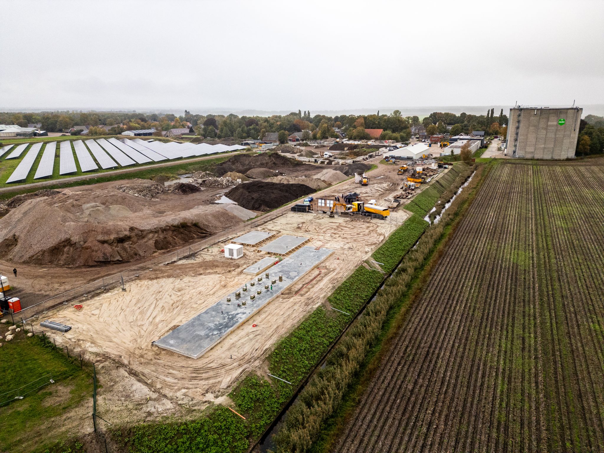 Het project H2 Hollandia is een uniek project. Wat maakt het dan zo bijzonder? De schaal van het waterstofsysteem en de combinatie met het zonnepark. Het werkt zo. Zonnepark Vloeivelden Hollandia wekt groene energie op. Een gedeelte van deze energie gaat naar de elektrolyser die groene waterstof produceert. Het elektriciteitsnet belasten we dus niet. De groene waterstof transporteren we naar een waterstoftankstation, H2 Drive. Deze waterstoftankstation ligt hemelsbreed 5 kilometer van H2 Hollandia en kan de waterstof direct leveren aan eindgebruikers en inzetten voor bijvoorbeeld zwaar transport.