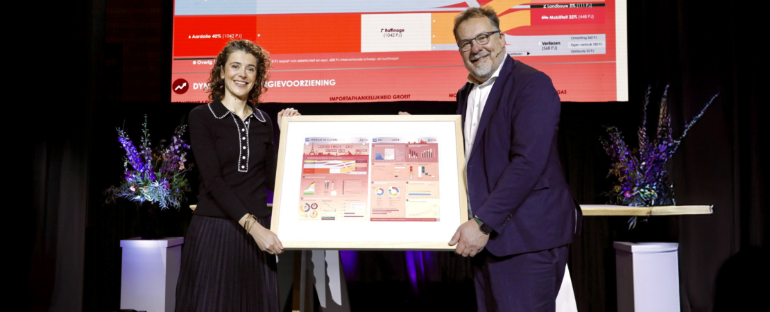 Gepubliceerd 14 januari 2026 op 1110 × 450 in Minister Sophie Hermans (Klimaat en Groene Groei) ontvangt eerste exemplaar van de 10e editie infographic ‘Energie in cijfers’