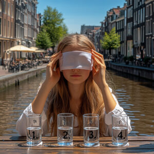 De blinde smaaktest in Nederland werd uitgevoerd door social enterprise KRNWTR+. Deelnemers proefden vier glazen water: drie met flessenwater en één met kraanwater. De opdracht? Herken het kraanwater.