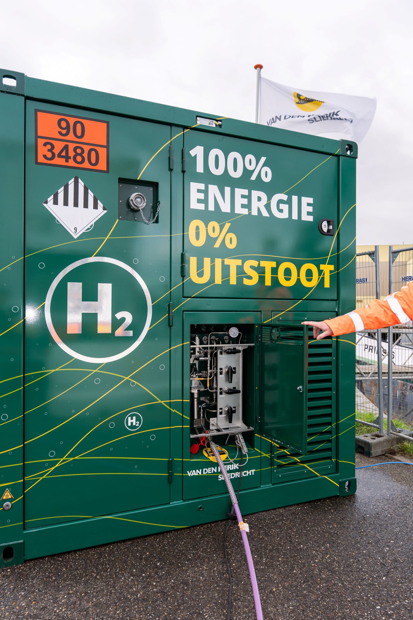 Op donderdag 30 oktober presenteerde Van den Herik-Sliedrecht een bijzondere ontwikkeling op het gebied van verduurzaming in de waterbouw aan de markt. Als eerste beschikt Van den Herik over een draadkraanschip dat volledig vaart en werkt op accu’s geladen via waterstof brandstofcellen. Het schip, de ‘Prins 6’, is door Rijkswaterstaat aangemerkt als ‘Koploper’ vanuit het transitiepad Kustlijnzorg en Vaargeulonderhoud, waarmee Rijkswaterstaat verduurzaming in het werkveld aanjaagt.