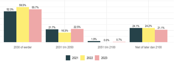 Figuur: In welk jaar streeft uw organisatie ernaar om de ecologische voetafdruk gereduceerd te hebben tot een verwaarloosbare hoeveelheid?