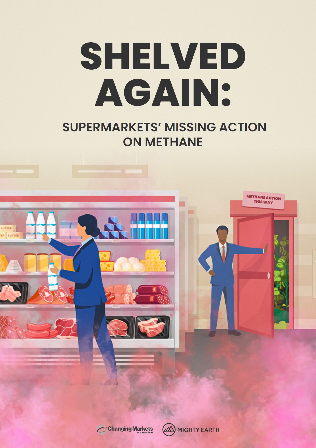 De Changing Markets Foundation en Mighty Earth hebben hun nieuwste ranglijst voor de retailsector gepubliceerd – Shelved Again: Supermarkets’ Missing Action on Methane – waarin de methaanprestaties van de 20 grootste supermarkten ter wereld worden beoordeeld. Met een geschatte gezamenlijke jaaromzet van 2 biljoen dollar hebben deze retailgiganten samen een economische omvang vergelijkbaar met Brazilië. Nieuw onderzoek toont aan dat zij er nog steeds niet in slagen om effectieve maatregelen te nemen tegen het krachtige broeikasgas methaan dat op grote schaal vrijkomt bij de productie van vlees- en zuivelproducten.
