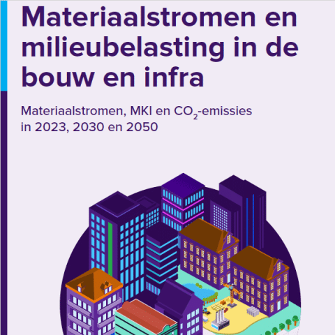 - De milieubelasting van de bouwsector in 2023 uitgedrukt in MKI bedraagt bijna € 2,3 miljard. De verwachting is dat door renovatie- en vervangingsactiviteiten van zonnepanelen en warmtepompen in 2040 de MKI eerst zakt om vervolgens richting 2050 weer toe te nemen tot ongeveer € 1,8 miljard.