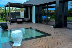 Als u op zoek bent naar natuurlijke en duurzame terrasplanken met een overtuigende CO2-balans, dan is MOSO® Bamboo X-treme® de juiste oplossing. En voor wie de gebruikelijke manier om terrasplanken te plaatsen te alledaags vindt, bieden de nieuwe visgraatplanken uit deze collectie nu de kans om de populaire woonkamersfeer naar buiten te brengen. Het gladde oppervlak, dat in de fabriek met Woca-olie wordt behandeld, versterkt deze look en feel. Bovendien zijn de planken duurzaam en gemakkelijk te onderhouden: zon en droogte, regen, sneeuw en vorst tasten de planken voor buiten niet of nauwelijks aan, want een complex Thermo-Density® productieproces beschermt ze en maakt ze uiterst robuust.