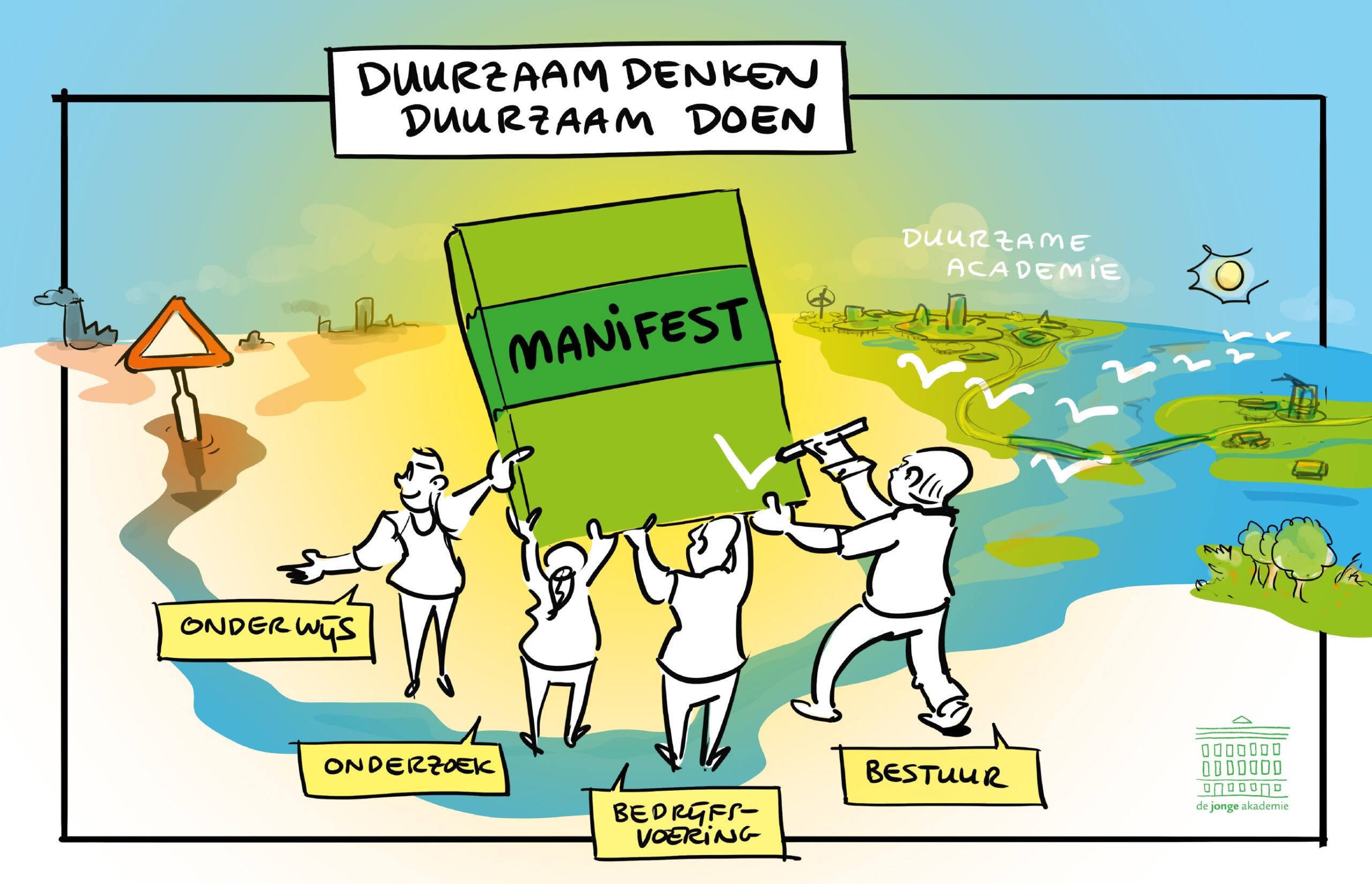 NWO heeft het manifest Duurzaam denken, duurzaam doen van De Jonge Akademie en de Green Young Academy ondertekend. Met deze stap spreekt NWO zich nadrukkelijk uit voor een groenere, toekomstbestendige kennissector. Het manifest roept kennisinstellingen op gezamenlijk verantwoordelijkheid te nemen voor duurzame keuzes in onderwijs, onderzoek, bedrijfsvoering en bestuur.