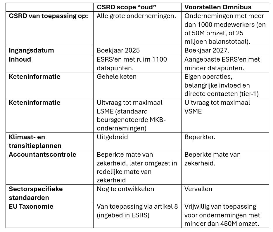 Afgelopen week presenteerde de Europese commissie de zogenaamde Omnibus[1], een pakket voorstellen tot wijziging, en afslanking, van meerdere duurzaamheidsrichtlijnen. Afslanking klinkt goed, maar is die ook positief in alle opzichten? In deze bijdrage ligt de nadruk primair op de effecten op de Corporate Sustainability Reporting Directive (CSRD), en staan drie aanpassingen centraal: