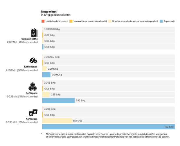 GCP, IDH en Solidaridad, hebben een reeks onderzoeken laten uitvoeren om gedetailleerd inzicht te verkrijgen over de waardeverdeling in de koffieketen. Het onderzoek door bureau BASIC gebruikt openbare gegevens van de Duitse koffiemarkt om schattingen te maken van de verdeling van waarde, kosten, belastingen en netto winstmarges en boeren inkomens in de koffieproductieketen. Deze uitkomsten zijn geverifieerd door uitgebreide interviews en overleg met partijen in de sector. De resultaten zijn indicatief voor hoe waarde wordt verdeeld in andere landen.