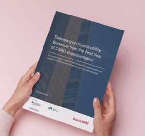 Nu de Europese regels voor duurzaamheidsverslaglegging onder grote politieke druk staan, levert een nieuwe analyse van Frank Bold actueel bewijs dat de Corporate Sustainability Reporting Directive (CSRD) in de praktijk al voor zinvolle veranderingen zorgt. Uit de analyse van de eerste golf rapporten van 100 grote Europese bedrijven blijkt dat de CSRD heeft gedaan wat ze zich ten doel had gesteld: duurzaamheidsverslaggeving verder brengen dan alleen afvinken, gebruikers voorzien van nuttige data en er een echte managementtool van maken voor het navigeren door klimaat- en sociale risico’s.