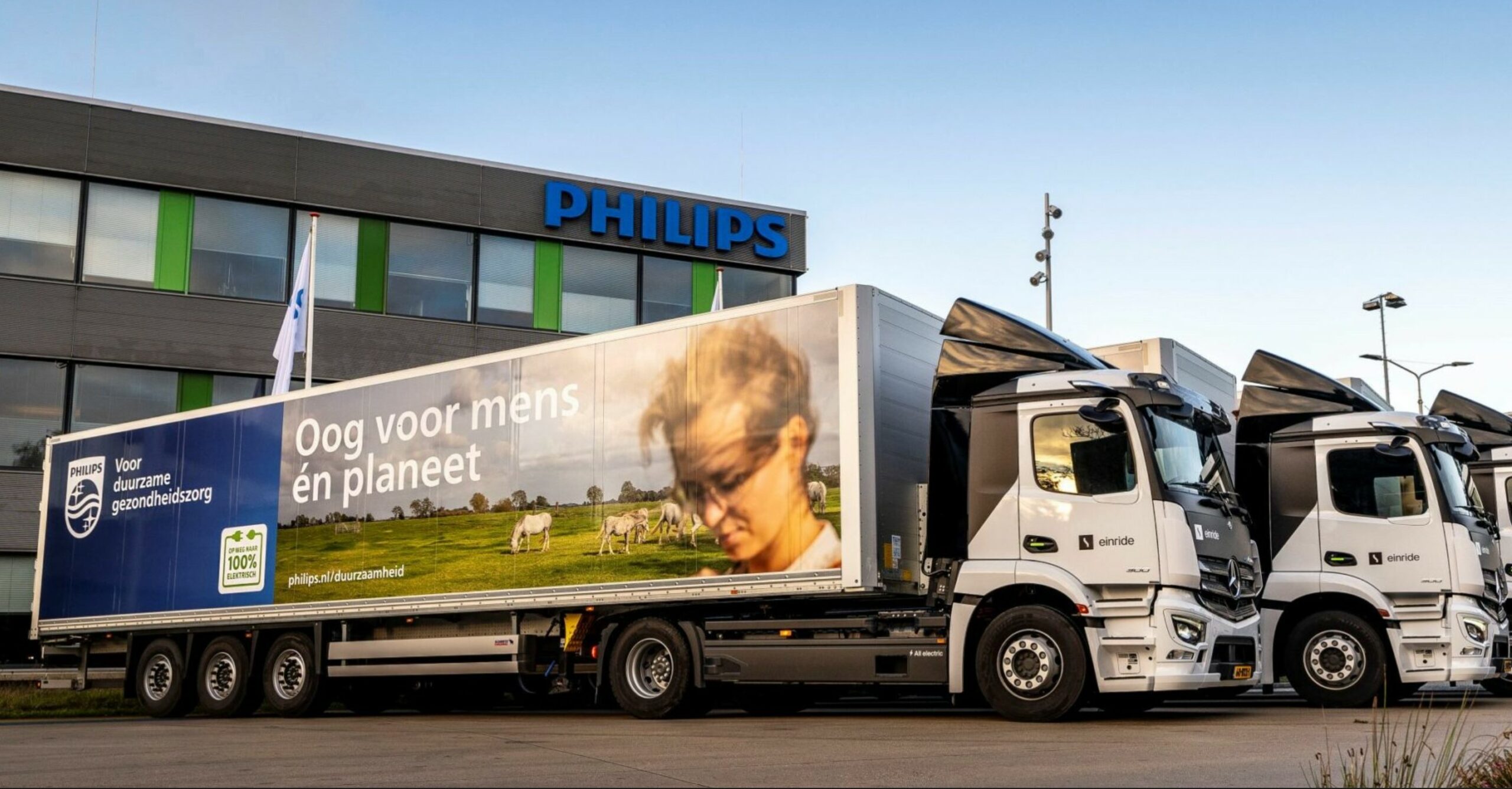 Gepubliceerd 25 oktober 2024 op 2560 × 1336 in Philips Campus in Best verduurzaamt wegtransport met elektrische trucks