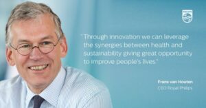 “Through innovation we can leverage the synergies between health and sustainability giving great opportunity to improve people’s lives,” said Frans van Houten, CEO of Royal Philips, in the run-up to Davos 2020. “Whether it’s empowering clinicians to improve patient outcomes or creating new business models and circular economy solutions to reduce healthcare’s carbon footprint, we know that achieving the scale necessary to make a global difference can only be done through inclusive stakeholder partnerships that create true end-to-end solutions.”
