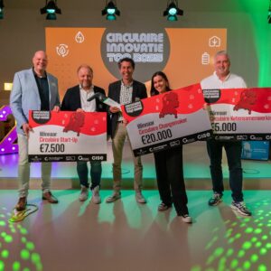 Tijdens een inspirerende middag in de Bibliotheek Lochal in Tilburg werden de winnaars bekendgemaakt. De Brabantse Circulaire Innovatie Top is het jaarlijkse evenement wat de meest vooruitstrevende circulaire ondernemers en initiatieven uit de provincie Brabant in de schijnwerpers zet. De finalisten presenteerden hun innovatieve projecten tijdens een innovatiemarkt aan een deskundige jury en een breed publiek van ondernemers, beleidsmakers en experts op het gebied van circulariteit. De jury de lastige taak had om de beste initiatieven te selecteren in drie categorieën.