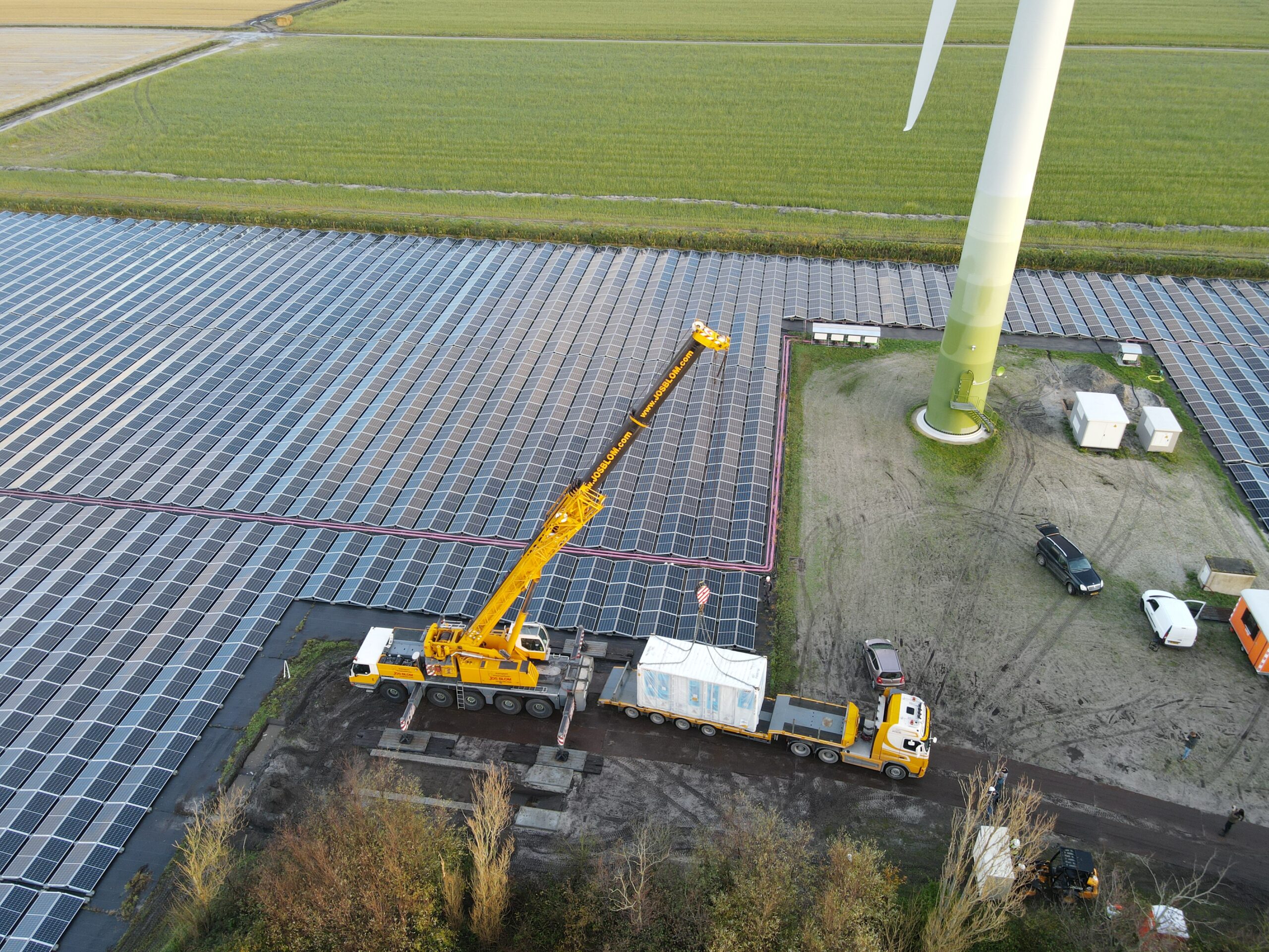 Gepubliceerd 1 december 2022 op 2560 × 1920 in Plaatsing batterij bij zonnepark en windturbine betekent primeur