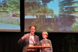 Naast de boekpresentatie lieten tijdens de avond voorlopers in de circulaire economie laten zien wat regeneratie precies inhoudt en wat het betekent om het leven centraal te stellen bij alles dat we doen. Zo liet Joost Wouters van The Seaweed Company zien dat wanneer zeewier in de (land)bouw gebruikt wordt dit bijdraagt aan een klimaatpositieve economie.