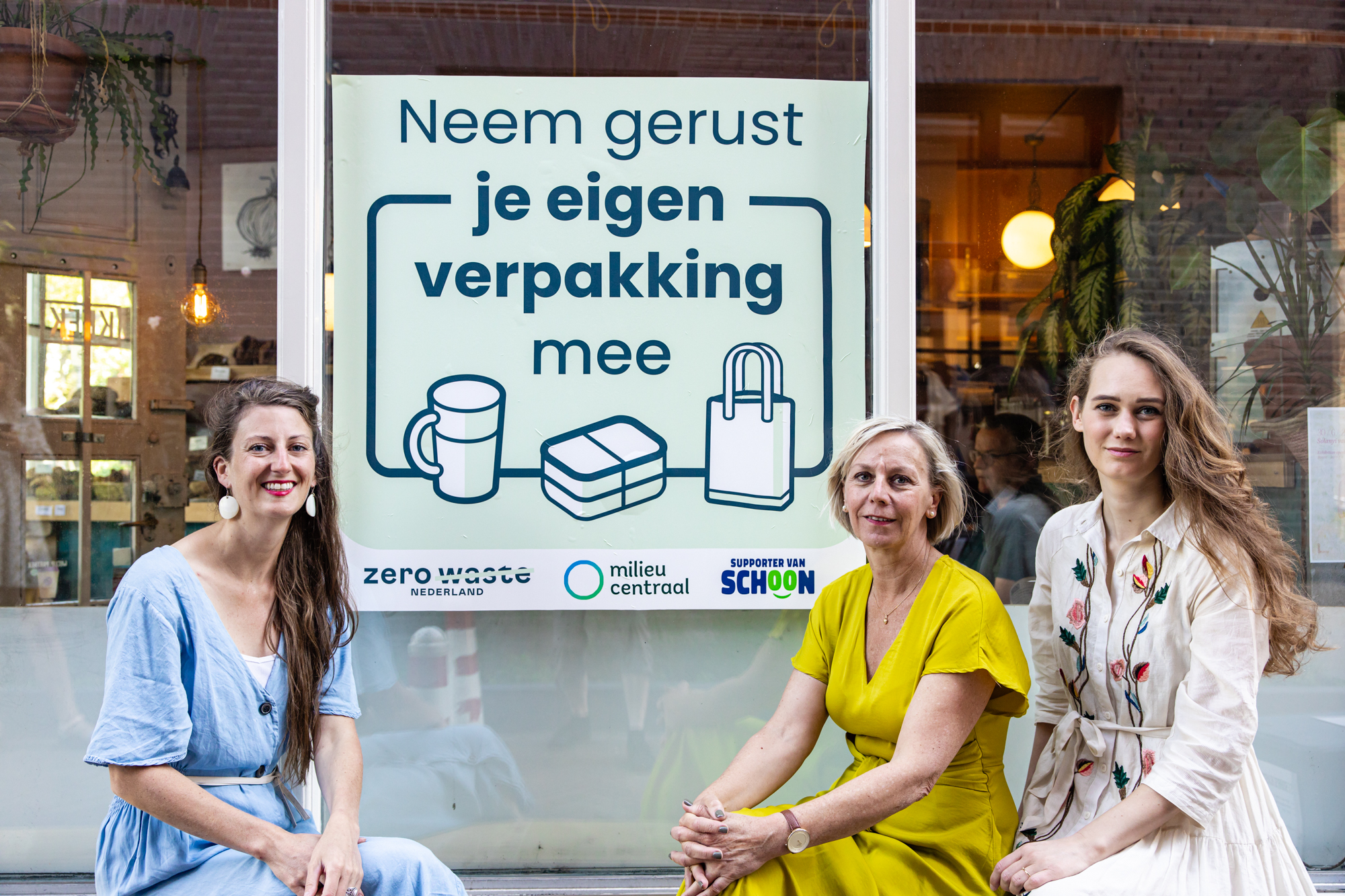 Gepubliceerd 2 augustus 2023 op 2000 × 1333 in Raamsticker vertelt consument waar hij welkom is met eigen beker en bakje