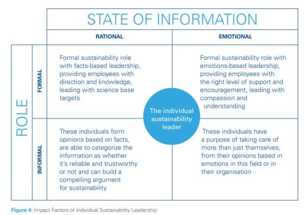 Based on 15 in-depth interviews with sustainability experts (e.g. Anniek Mauser (Unilever), Jeff Turner (DSM) and Geanne van Arkel (Interface)), as well as a literature review, the research demonstrates that individual sustainability leaders share many common characteristics and competencies. They can be found at any level in the organisation, irrespective of their responsibilities and roles. When successfully applied, sustainability leadership generates significant business and employee benefits, including increasing employees’ engagement, motivation, purpose and giving them pride in their daily work – promoting diversity, creativity and innovative thinking.