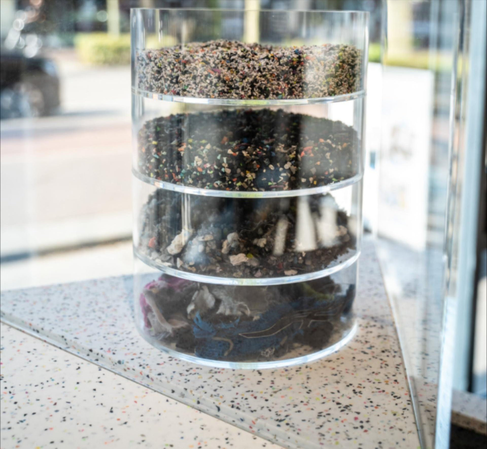 Het resultaat is te zien in Eindhoven. “We zijn de eerste sportwinkel in Nederland waar onze klanten hun eigen ingeleverde schoenen terugzien in de winkelinrichting”, zegt Danny Pormes, eigenaar van de Runnersworld-vestiging in Hoorn en tevens oprichter van FastFeetGrinded. Het nieuwe winkelconcept heet The Loop (de kringloop).