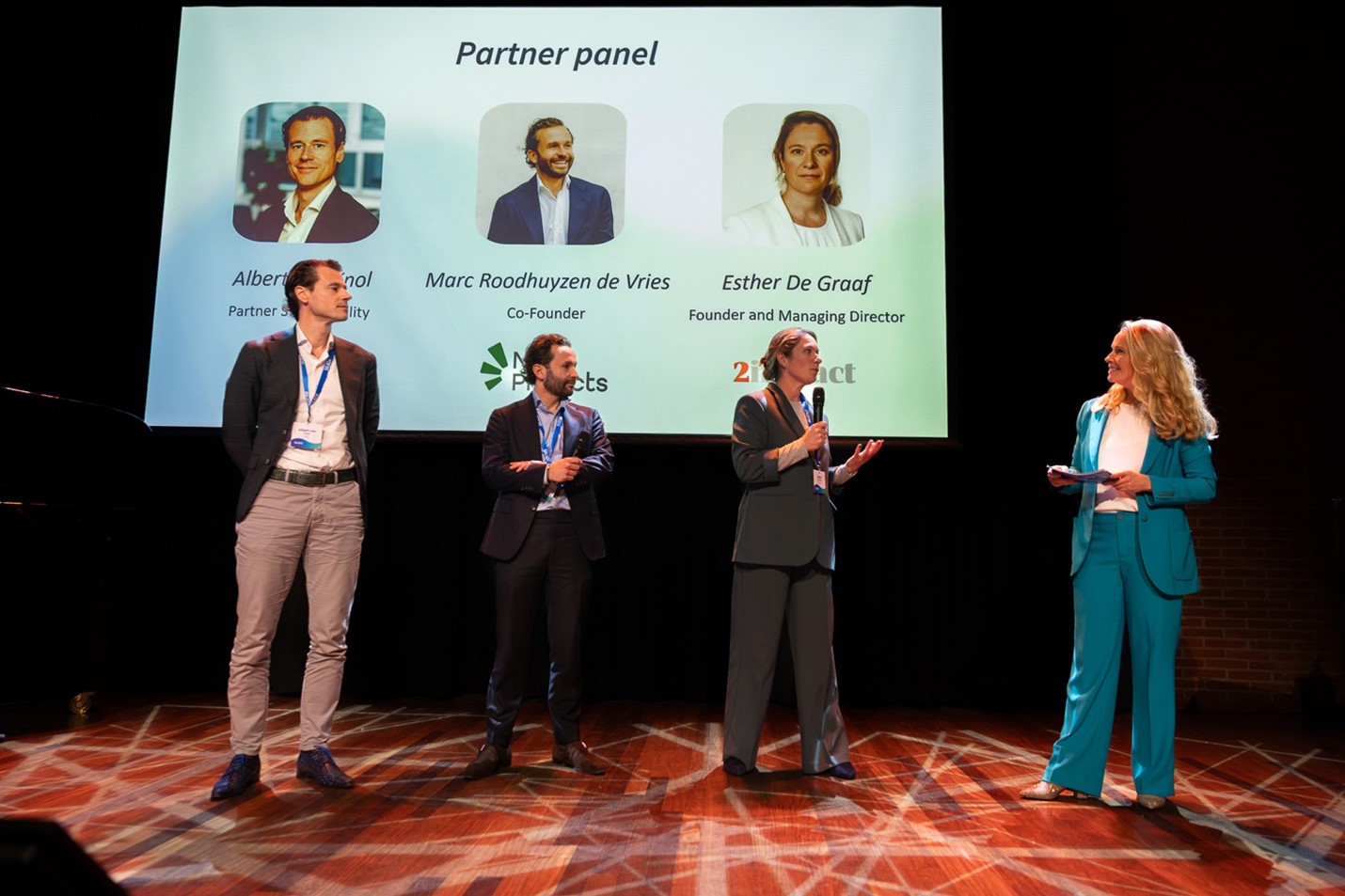Onze partners vertelden hoe het is om met Salacia samen te werken: persoonlijk, duidelijk, hands-on, maar bovenal gefocust op kwaliteit. Tijdens het partnerpanel benadrukten Esther de Graaf (2impact), Albert-Jan Knol (BDO) en Marc Roodhuyzen de Vries (Nexio Projects) hoe cruciaal samenwerking is om duurzaamheid écht te verankeren.