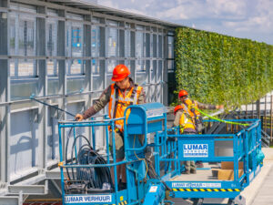 Het project omvat de installatie van een 700 vierkante meter grote groene gevel op het nieuwe warehouse van Seacon Logistics. Het WallPlanter-systeem met Hedera helix ‘Woerner’ rust op een robuuste draagconstructie. Elke plantenbak ontvangt automatisch voldoende water en voedingsstoffen via een slim irrigatiesysteem. Dit innovatieve systeem zorgt voor een duurzame, levendige groene gevel die niet alleen de esthetische waarde verhoogt, maar ook de ecologische voetafdruk van het gebouw aanzienlijk verbetert. Deze groene gevel draagt bij aan een groenere en meer geïntegreerde omgeving, waardoor het gebouw perfect past in het landschap.