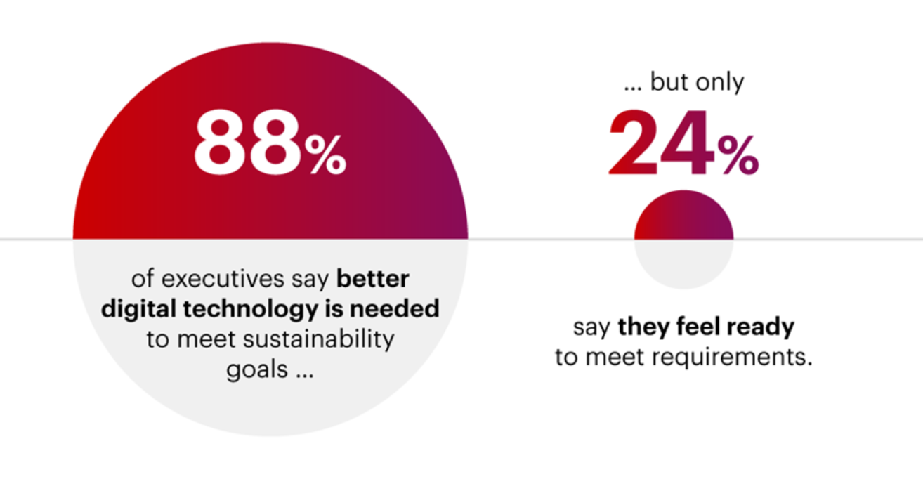 Bain ondervroeg meer dan 300 executives en bijna 90% was het ermee eens dat verbeteringen in digitale technologie cruciaal zijn om hun duurzaamheidsdoelen te bereiken. De meesten zeggen echter dat ze niet de nodige acties ondernemen om dit te realiseren.