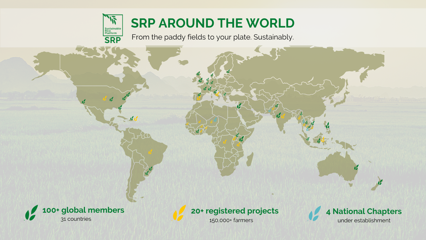 Het Sustainable Rice Platform is een initiatief van o.a. het VN-Milieuprogramma, het International Rice Research Institute, het Duitse GiZ en meer dan 100 private en publieke leden en spelers binnen de wereldwijde keten van de rijstproductie. In 2011 lanceerden zij het SRP multi-stakeholderprogramma. Hierbinnen wordt onderzoek gedaan om duurzamere rijstteelt, productie, beleidsvorming, handel en consumptie te bevorderen. De visie van het SRP en haar leden is erop gericht om de wereld duurzaam te kunnen blijven voeden door een verandering in de sector teweeg te brengen waarbij gezonde, hoogwaardige en voedzame rijst voor de consument centraal staat. Tegelijkertijd helpt het platform de werknemers en kleine boeren om de werk en leefomstandigheden te verbeteren en ook onze planeet verder te beschermen.
