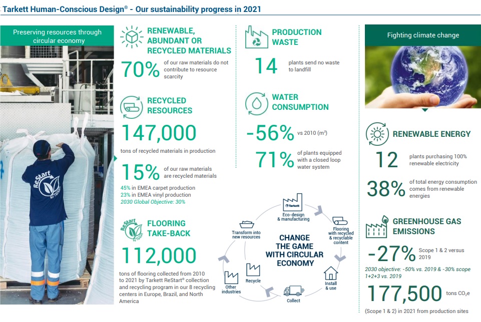 Gepubliceerd 5 april 2022 op 961 × 645 in Tarkett publiceert Duurzaamheidsverslag 2021 met nieuwe klimaatdoelen