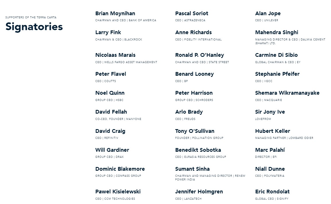 HRH The Prince of Wales is making an urgent appeal to private sector leaders around the world to join this endeavour and to give their support to the Terra Carta.