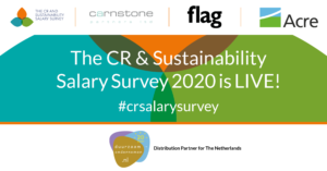 Today Acre, Carnstone and Flag, launched ‘The CR and Sustainability Salary Survey 2020’. The growing areas of corporate responsibility and sustainability have always been difficult to define, and the survey’s purpose is to provide a clearer view of how corporate responsibility and sustainability professionals fit into the modern business landscape. The Dutch CSR Portal (Online Kenniscentrum Duurzaam Ondernemen) is the distribution partner for The Netherlands.