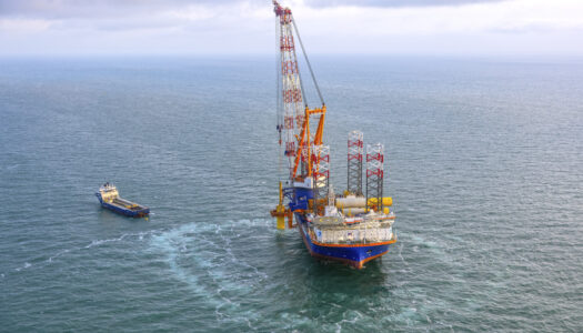 Van Oord installeert eerste monopile van Ecowende windpark op Noordzee