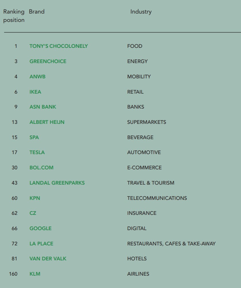 Binnen de Bankensector heeft ASN Bank de branchewinnaarspositie dit jaar overgenomen van Rabobank, die vorig jaar nog branchewinnaar werd. Dit jaar werden, naast de vleesvervangers, ook de e-commerce, – en digital-sector opgenomen in het onderzoek.