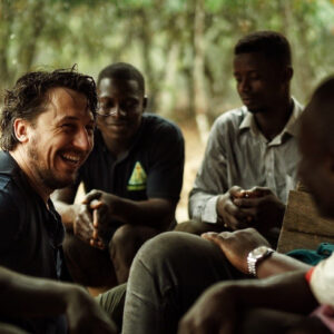 Foto: Lars Gierveld tussen de boeren in Banko, Ghana. Credits: Samie Reynaerts