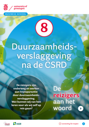 University of Groningen Business School (UGBS) heeft de achtste editie gepubliceerd in de Essayreeks ‘Duurzaamheidsverslaggeving na de CSRD’. In de eerste edities – die door een breed publiek zijn gedownload – kwamen respectievelijk de wetgever, de jury, de pioniers, de praktijk, de NGO, de IT-experts en het Burgerlijk Wetboek ‘aan het woord’. Nu, in de achtste editie, staan ‘De Reizigers’ centraal: de ondernemers die ondanks de veranderende regels tóch vrijwillig rapporteren over hun duurzaamheidsprestaties. Voor hen is duurzame waardecreatie een logisch onderdeel van de business case van de onderneming. Wat kunnen we van hen leren?