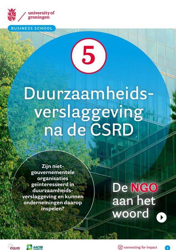 University of Groningen Business School (UGBS) heeft de vijfde editie gepubliceerd in de Essayreeks ‘Duurzaamheidsverslaggeving na de CSRD’. In de eerste edities – die door een breed publiek zijn gedownload – kwamen respectievelijk de wetgever, de jury, de pioniers en de praktijk aan het woord. Nu, in de vijfde editie, staat de NGO centraal.