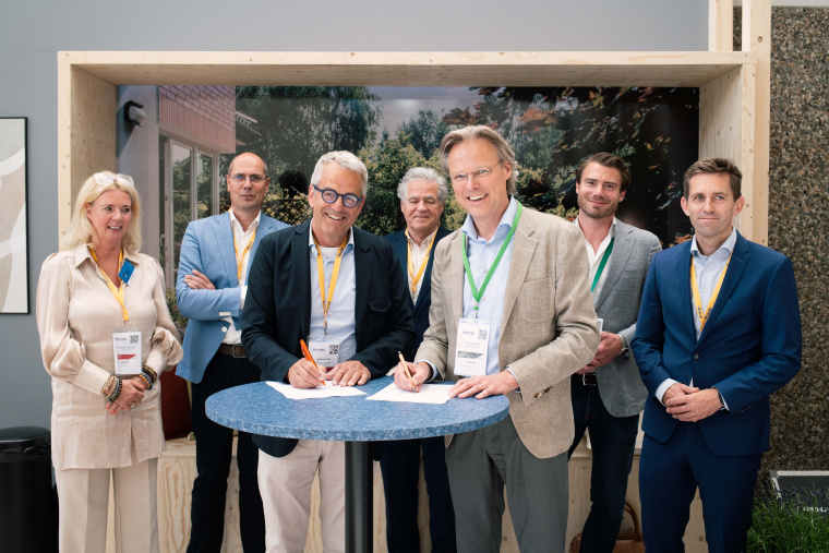 Gepubliceerd 16 juni 2022 op 760 × 507 in Unieke samenwerking verwerkt houten reststromen uit Nederlandse bossen tot biobased en gerecycled plaatmateriaal voor woningbouw