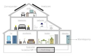Het basispakket bestaat uit een Hydrobag (warmtebatterij) van ongeveer duizend liter, twee rekken heatpipes die op het dak geplaatst worden, en een besturingskast. “Hiermee is een besparing van zo’n gemiddeld vijftig procent op de gasrekening te realiseren”, vertelt Yorick Wessels van Hydrobag. “Het systeem is modulair en is dus in de loop der tijd uit te breiden. Het complete pakket laten installeren kan natuurlijk ook.” Met dit complete pakket is vrijwel elke woning volledig gasvrij te maken. Om van het gas af te kunnen, wordt het basispakket uitgebreid met een warmtepomp die in de koude wintermaanden ondersteuning biedt.