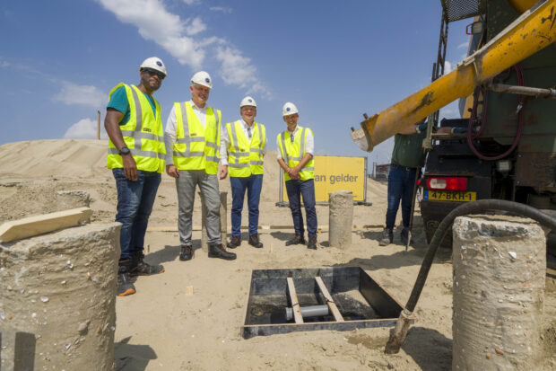 In Delfzijl start Van Gelder Groep woensdag 2 juli met de bouw van een van de grootste batterijparken van Nederland: GIGA LEOPARD. Met 300 MW vermogen en 1.200 MWh opslagcapaciteit biedt dit park vanaf 2027 netstabiliteit en groene stroom voor honderdduizenden energiegebruikers in Noord-Nederland. Zo helpt Van Gelder netcongestie op te lossen, black-outs te vermijden en ons land veilig, gezond en leefbaar te houden, ook in de toekomst.