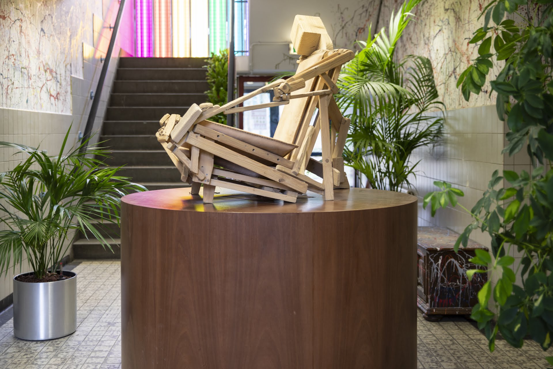 Zowel binnen als buiten worden zoveel mogelijk hergebruikte materialen gebruikt. Zo maakt het Amsterdamse Studio Wild een kunstwerk dat de etages allemaal buitenlangs verbindt. De ‘trap’ is gemaakt van authentieke Bailey-brugdelen, die de geallieerden tijdens de oorlog in Normandië gebruikten om havens en bruggen te bouwen. De vensterbanken en klapdeuren komen uit een oud ziekenhuis.