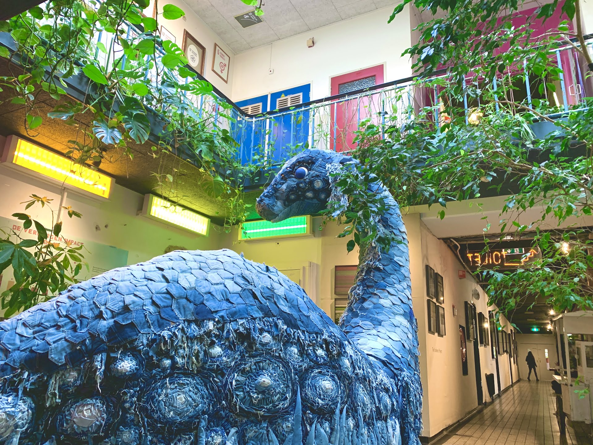 De grootste bewoner van De Groene Afslag is Messy. Een enorm Monster van Lochness gemaakt van afgedankte jeans door Waterbear en MUD Jeans. Voordat Messy naar De Groene Afslag kwam heeft ze op de klimaattop in Schotland gestaan.