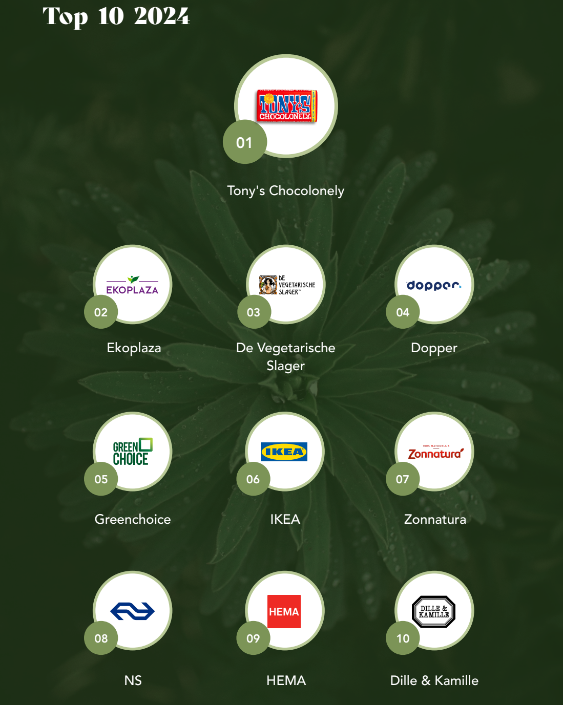 Gepubliceerd 15 maart 2024 op 1099 × 1377 in Vertrouwen van Nederlanders in duurzaamheid van bedrijven zakt tot dieptepunt, Tony’s Chocolonely nog steeds op één