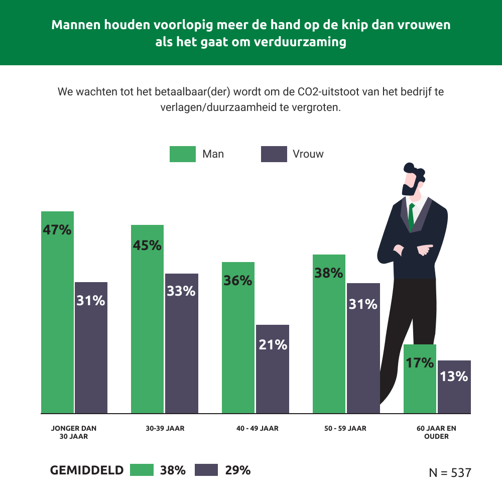 Bijna 80 procent van de ondervraagden vindt het belangrijk dat online shoppen duurzamer wordt. Mannen (41 procent) zien meer in een verplichte verduurzaming van webshops dan vrouwen (33 procent. “Consumenten voelen de noodzaak om het verschil te maken en vragen steeds vaker om duurzaamheid. En er zijn genoeg opties”, zegt Michel van Koekenberg, oprichter en CEO van Wolfpack. “Denk bijvoorbeeld aan milieuvriendelijke verpakkingen en minder papier, de optie om de klant te laten kiezen voor bezorging met een fietskoerier of een elektrische bestelauto, of de keuze om een pakketje niet meteen de volgende dag te laten bezorgen maar pas als alle onderdelen binnen zijn.”