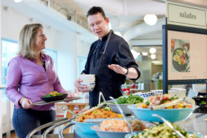 Fay Dalmeijer, Facilitair Manager a.i. bij de Volksbank, is enthousiast over de introductie van de populaire foodbrand Modern Recipe: “Onze medewerkers gaan met plezier naar het restaurant. Ze genieten van het eten op kantoor.” Ze benadrukt het belang van een samenwerking die verder gaat dan de typische opdrachtgever-opdrachtnemer relatie. “We staan naast elkaar en werken proactief samen, wat een open en eerlijke dialoog vereist. De positieve impact hiervan is direct te merken. Het team van Sodexo brengt nieuwe energie en dat voelen onze medewerkers ook. Dit is hospitality in optima forma.”