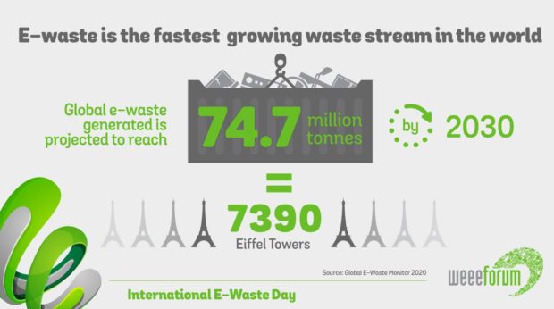 E-waste is de komende 10 jaar de snelst groeiende afvalstroom. Per persoon groeit deze afvalstroom van afgedankte elektrische apparaten en energiezuinige lampen. In 2030 zal deze met 82 kg per persoon toegenomen zijn. Die aanwas is 20% meer dan de afgelopen jaren, ofwel jaarlijks zo’n 9 kg per persoon.