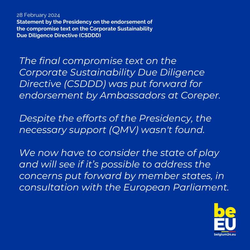 Gepubliceerd 29 februari 2024 op 800 × 800 in Wetgeving maatschappelijk verantwoord ondernemen (CSDDD) geblokkeerd in Europa