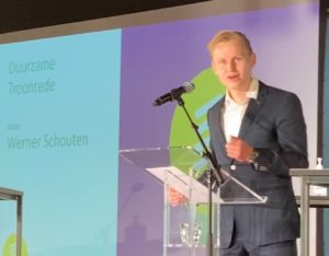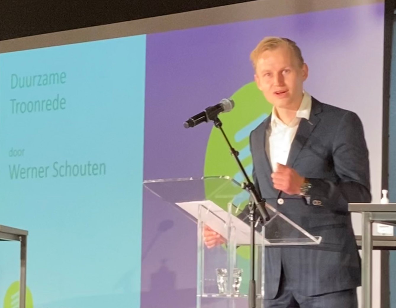 Werner Schouten, voorzitter van de Jonge Klimaatbeweging, las de ‘Duurzame Troonrede’ voor. Een zeer indrukwekkend pleidooi: ‘Tijd voor Generatiegerechtigheid’. Lees hier de tekst van zijn rede.