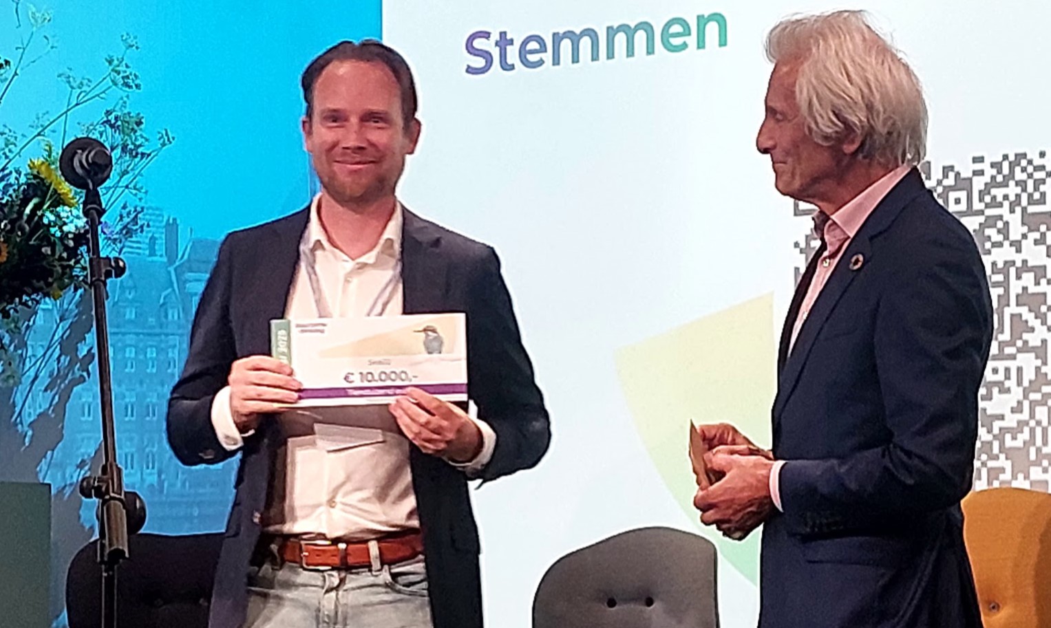 Foto bovenaan: Maurits Groen overhandigde de Duurzame Dinsdag koffer met alle inzendingen aan Sophie Hermans, demissionair minister van Klimaat en Groene Groei. (Foto: Coen Halmans)